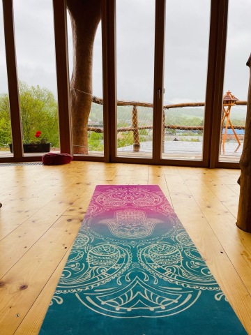 Součástí vybavení domu větru jsou pomůcky na cvičení - karimatky/jogamatky, polštářky, bloky, taburetky, a mandalové koberečky.