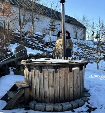 BYLINNÁ KÁĎ, NEBO VYHŘÍVANÝ SUD je jedinečný způsob relaxace ve vyhřáté vodě, pod širým nebem. Tento tradiční wellness prvek kombinuje blahodárné účinky teplé vody, bylinných extraktů a přírodního prostředí, což přispívá k hluboké regeneraci těla i mysli.